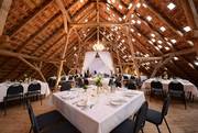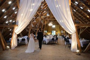 Besonders interessant hier sind die Ferienwohnungen, in denen über 60 Personen übernachten können. Der Innenraum dieser Location ist mit unserer Dekoration aus Kronleuchtern, Stoffen und Lichterketten auf alle Fälle ein Highlight für eine einmalige Feier.
