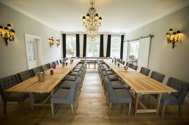Das Catering kann über zwei Event-Küchen erfolgen und Mobiliar ist für 100 Pers. vorhanden. Die große Terrasse auf der Rückseite des Hauses bietet perfekte Voraussetzungen für eine Kaffeetafel im Freien.